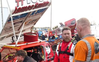 James had a fair rubbish season with only 4 meetings complete and 1 meeting with a guest driver! We had a lot of car problems, a blown engine and then a dislocated shoulder at Bradford……putting his race overalls on!!